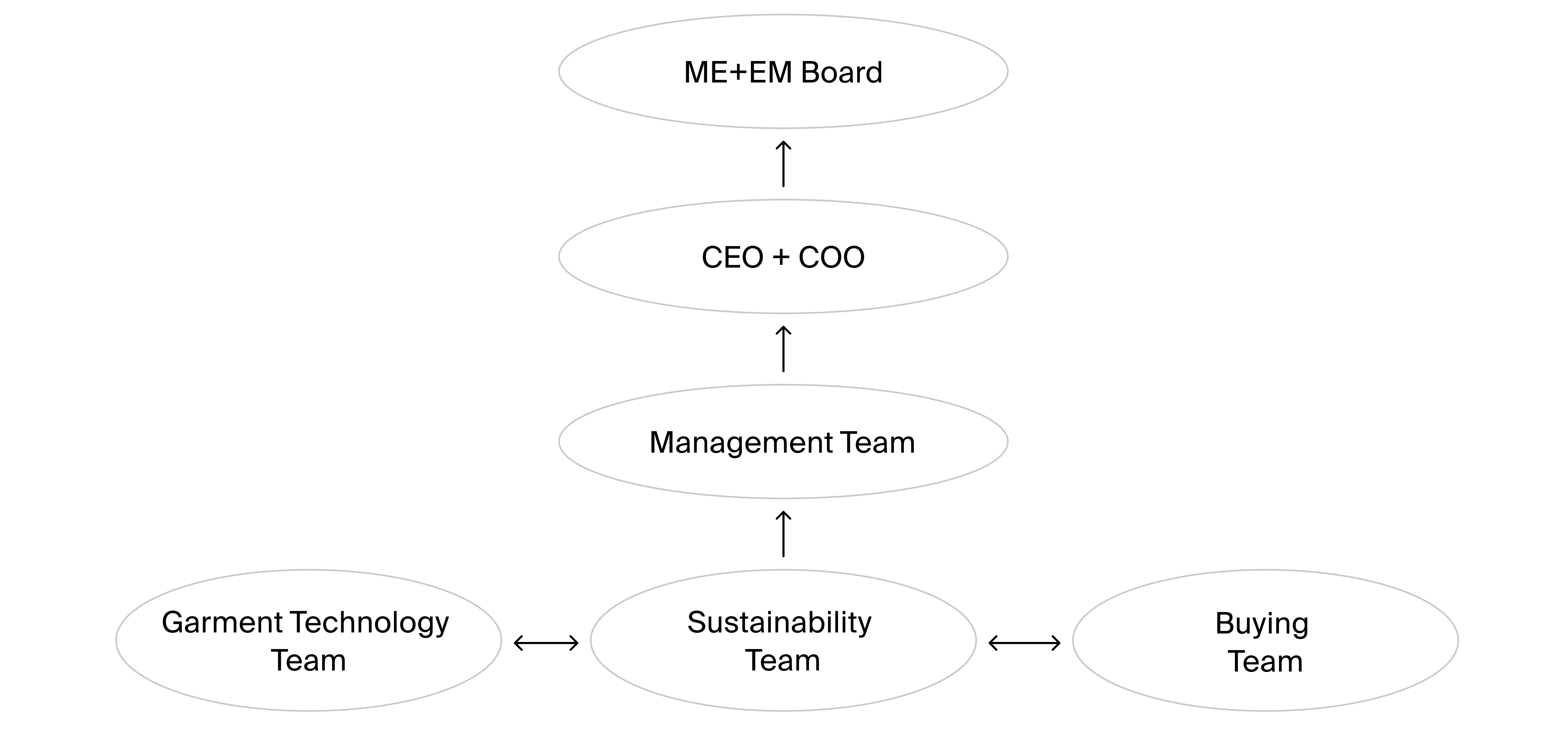 Senior management directs the company’s overall strategy and values, including responses to any human rights violations. Day-to-day, the Sustainability team advances the human rights agenda by working with suppliers, promoting the code of conduct, and managing risk. The Buying team ensures suppliers align with ME+EM’s responsible business values, onboarding them through established processes and prioritising responsible purchasing and long-term, transparent supplier relationships.