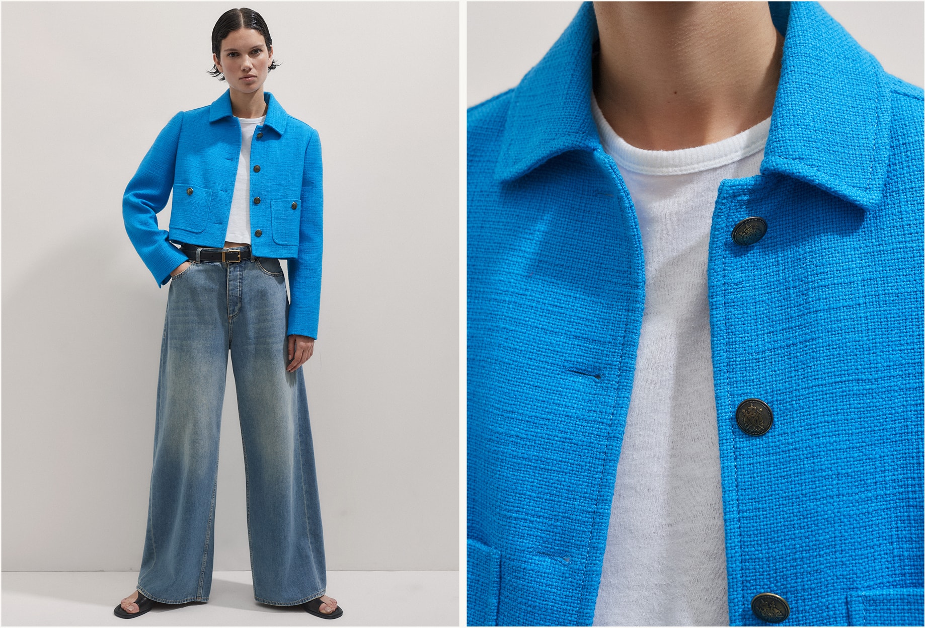 If you prefer a more sculpted jacket like the Sharp Shoulder Blazer, then it’s the perfect chance to choose a more statement trouser like the wide A-line shape of our Culotte Jean.